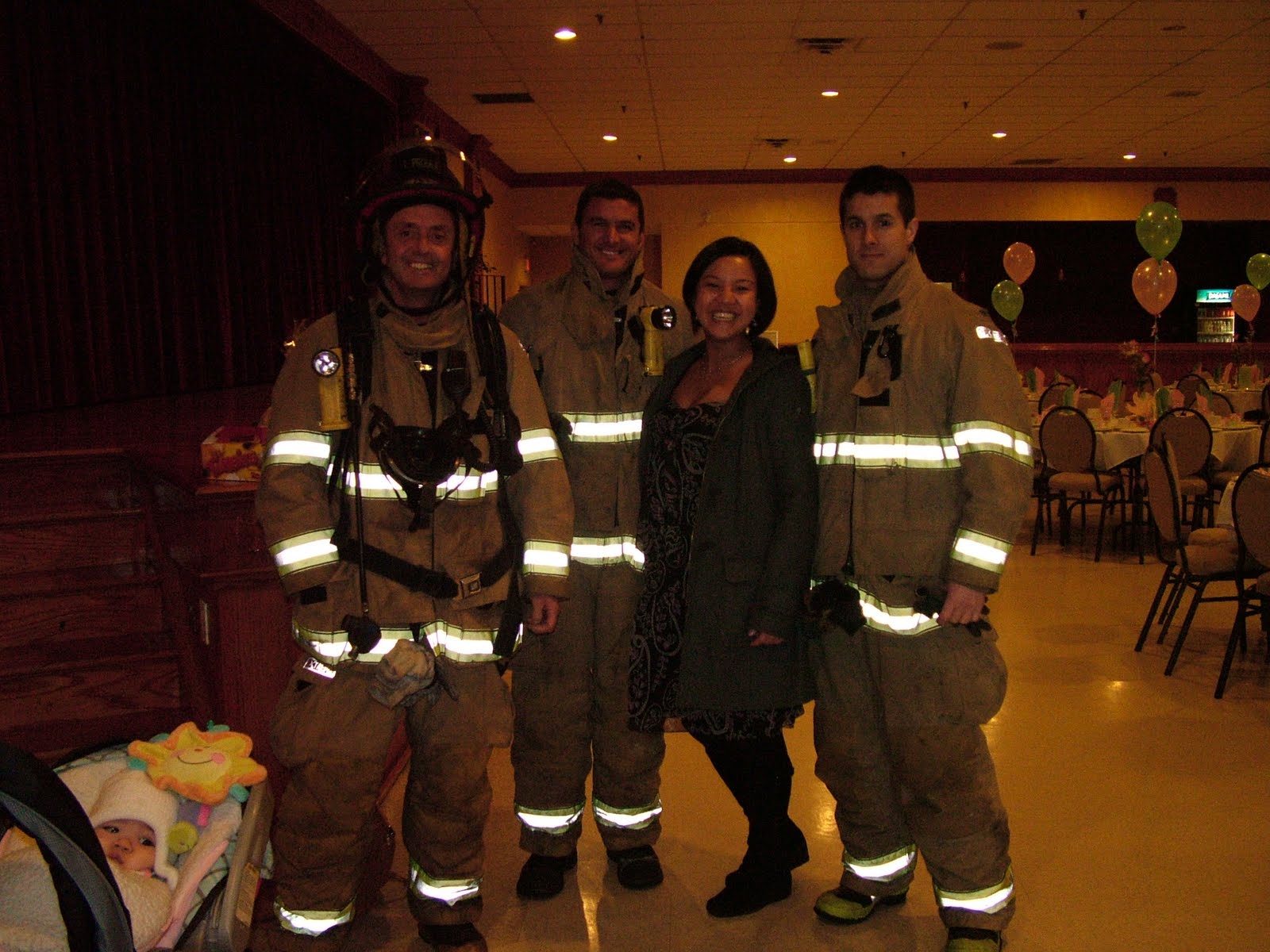 Look at you with all the hot fireman....You look like one of those high school girls standing between a bunch of hot college guys trying to get BUZEEE..Geez...you are married with a kid...BEHAVE!!!