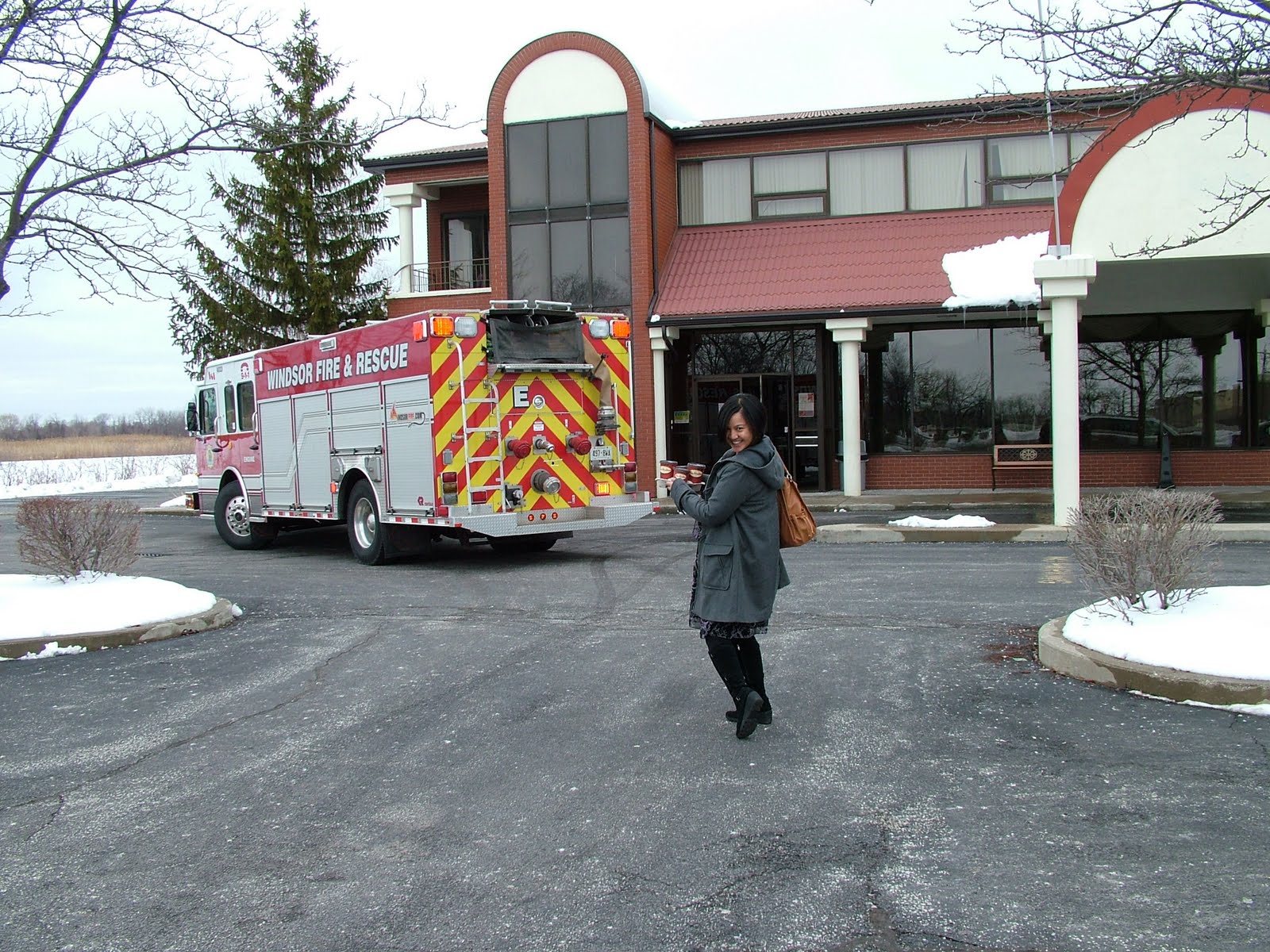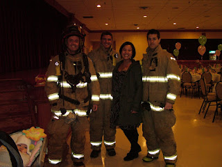 On Sunday, was the baby shower. When we arrived at the hall for the shower, the fire alarm was going off and a fire truck was arriving....All I could think was what the hell was happening?! AND OH, FIREMEN!!!